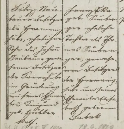 January 19, 2026 at 8:29 PM #2 Ich lese beim Vater:Filipp Neubauer Besitzer ... ehelicher Sohn des Johann Neubauer ... Besitzer des....... Kunigund geborene Hübler??bei der Mutter:Franziska geb. Sonnberger??? ... eheliche Tochter des Thomas Sonnberger - dann leider nichts mehr